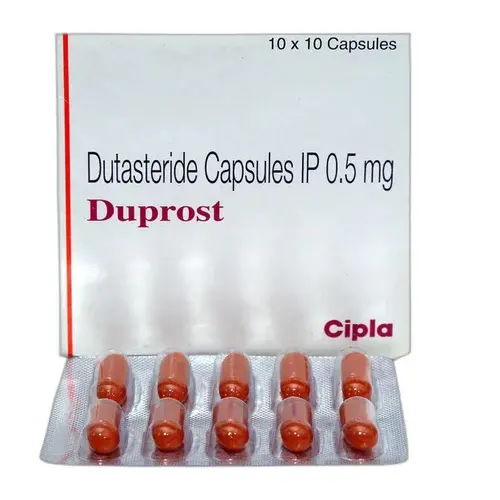 Dutasteride, the main ingredient in Duprost, reduces the production of DHT (dihydrotestosterone), which is the causative agent of AGA (androgenetic alopecia).